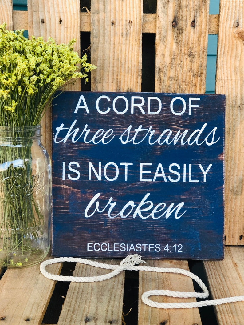 / A Cord Of Three Strands Is Not Easily Broken - A Cord of Three Strands is Not Easily Broken Sign Bible | Etsy : A cord of three strands is not quickly broken.